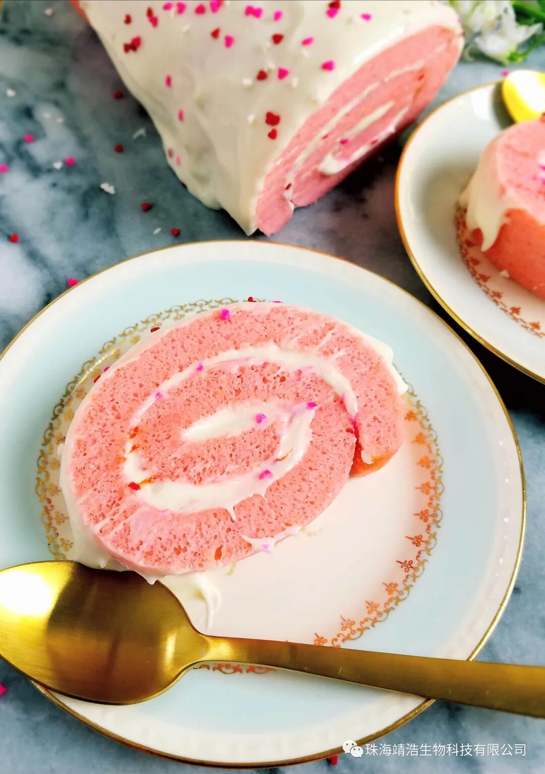 柔軟而不開裂,粉紅的少女色包裹著順滑細膩的奶油,吃進嘴里香、滑、甜、膩、柔和中卻又帶有質(zhì)感的微妙變化,每一口都是滿滿的幸福感,就用這粉紅少女色的瑞士卷來報答一下照顧了我們多年的母親大人吧!