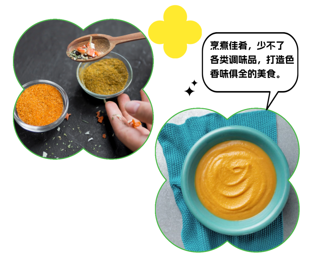 Condiments (food classification number: 12.0) can incorporate natural orange-yellow pigments like natural carotene, carthamins yellow, turmeric, and gardenia yellow. Liquid compound seasonings (food classification number: 12.10.03) can similarly use these natural pigments.
