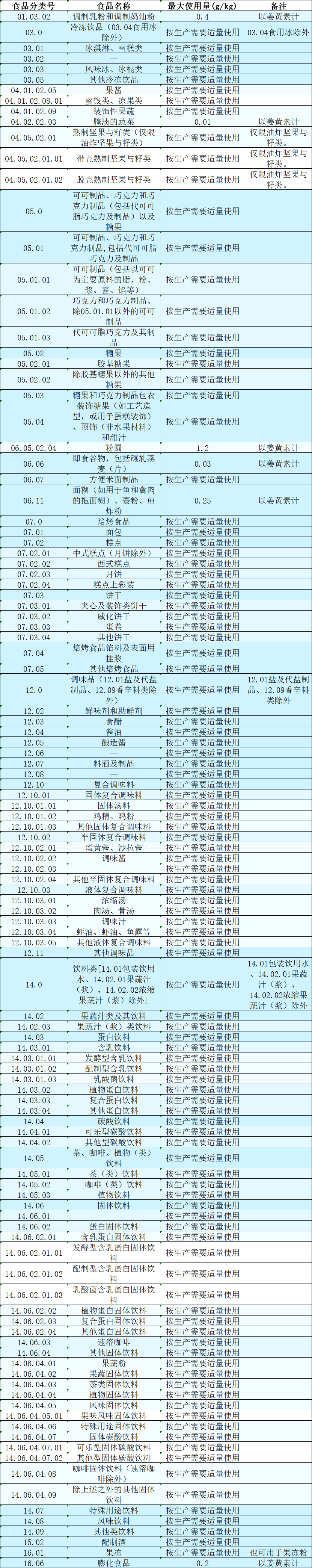 Turmeric is extensively utilized in the production and manufacturing of a wide range of food products. The specific industry classifications and usage levels of turmeric can be found in the relevant provisions of the "GB2760 National Food Safety Standard for Food Additive Use." For more detailed information, please refer to the table below.